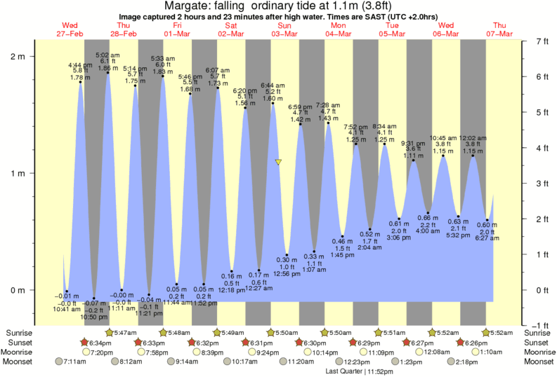 Image captured 2 hours and 23 minutes after high water (falling ordinary tide). Tide height was 1.1m (3.8 ft). Range 2.04m (6.7 ft). Toggle tide graph
