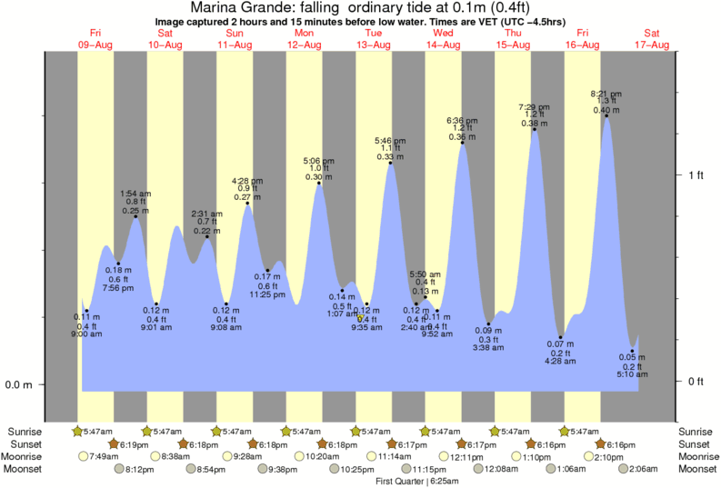 Forecast wind and swell just offshore from Marina Grande around the time the photo was taken