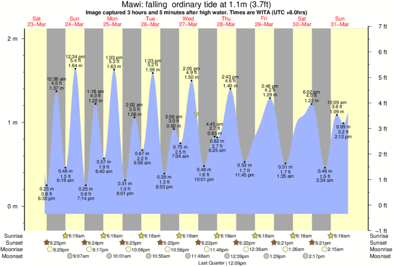 Forecast wind and swell just offshore from Mawi around the time the photo was taken
