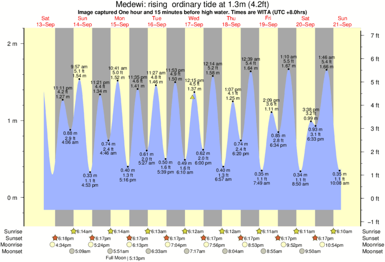 Image captured One hour and 18 minutes before high water (rising ordinary tide). Tide height was 1.3m (4.2 ft). Range 2.16m (7.1 ft). Toggle tide graph