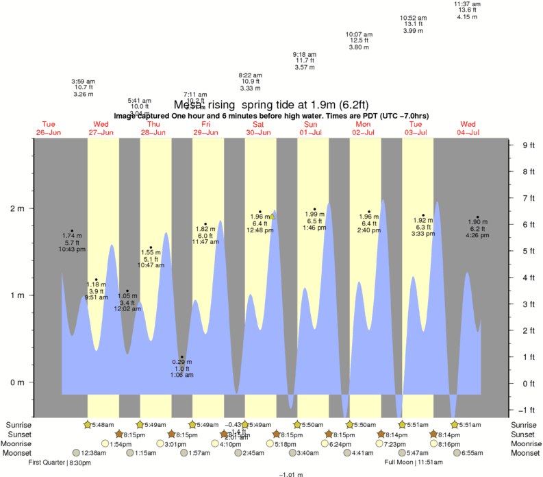 Image captured One hour and 6 minutes before high water (rising spring tide). Tide height was 1.9m (6.2 ft). Range 2.68m (8.8 ft). Toggle tide graph