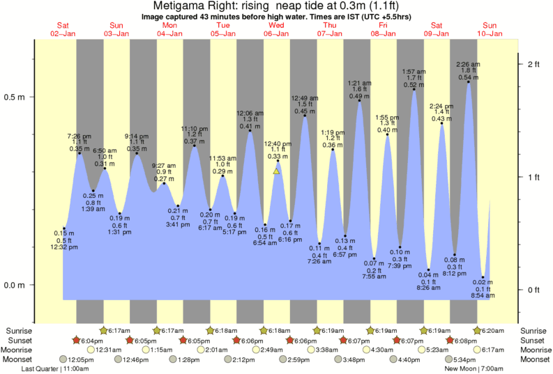Image captured 43 minutes before high water (rising neap tide). Tide height was 0.3m (1.1 ft). Range 0.63m (2.1 ft). Toggle tide graph