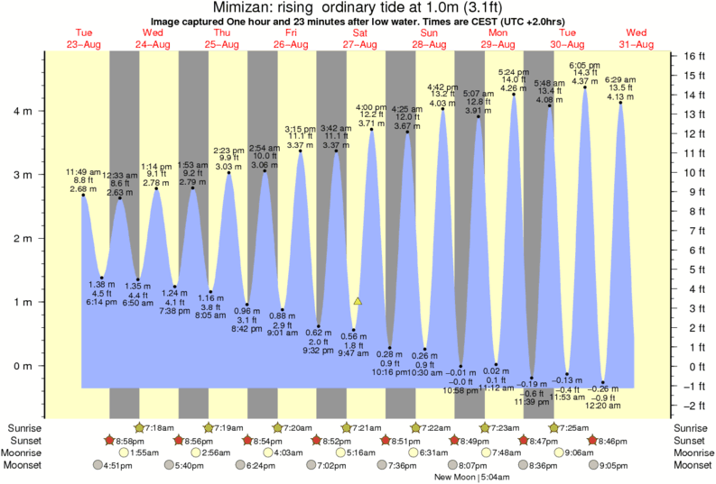Image captured One hour and 23 minutes after low water (rising ordinary tide). Tide height was 1.0m (3.1 ft). Range 4.81m (15.8 ft). Toggle tide graph
