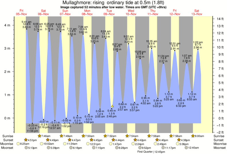 Image captured 52 minutes after low water (rising ordinary tide). Tide height was 0.5m (1.8 ft). Range 4.19m (13.7 ft). Toggle tide graph