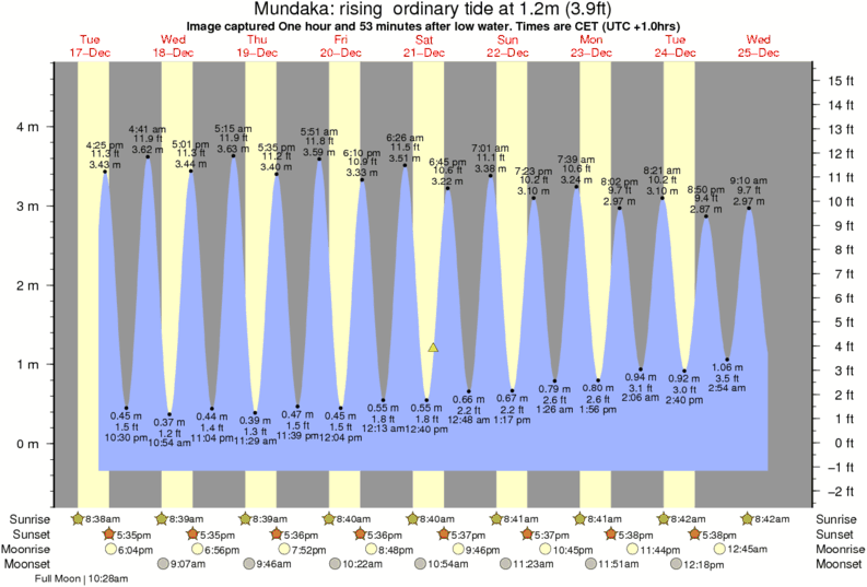 Image captured One hour and 53 minutes after low water (rising ordinary tide). Tide height was 1.2m (3.9 ft). Range 4.69m (15.4 ft). Toggle tide graph