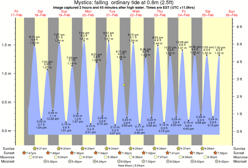 Image captured 2 hours and 45 minutes after high water (falling ordinary tide). Tide height was 0.8m (2.5 ft). Range 1.86m (6.1 ft). Toggle tide graph