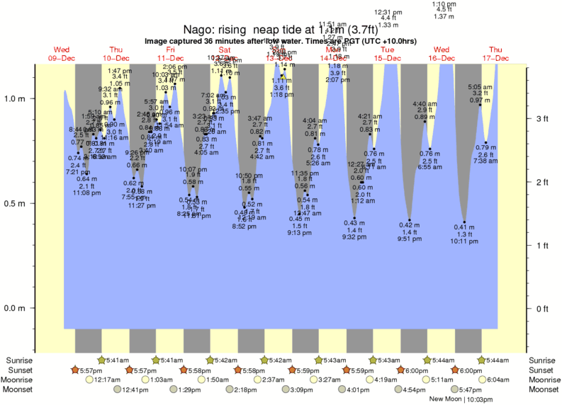 Forecast wind and swell just offshore from Nago around the time the photo was taken