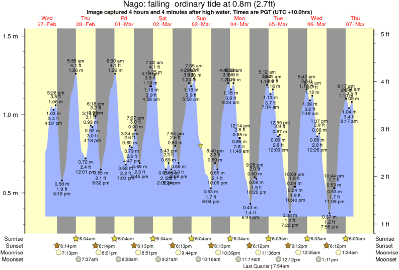 Forecast wind and swell just offshore from Nago around the time the photo was taken