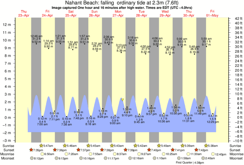 Image captured One hour and 16 minutes after high water (falling ordinary tide). Tide height was 2.3m (7.6 ft). Range 13.48m (44.2 ft). Toggle tide graph