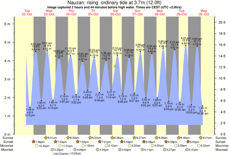 Image captured 2 hours and 44 minutes before high water (rising ordinary tide). Tide height was 3.7m (12.0 ft). Range 5.35m (17.6 ft). Toggle tide graph