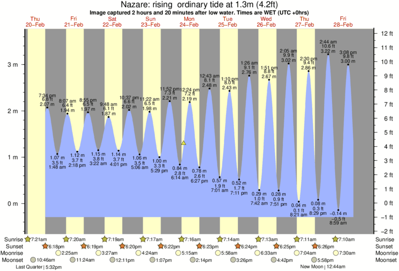 Forecast wind and swell just offshore from Nazare around the time the photo was taken