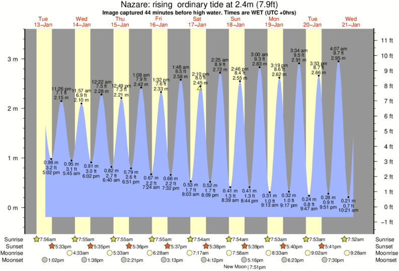 Forecast wind and swell just offshore from Nazare around the time the photo was taken