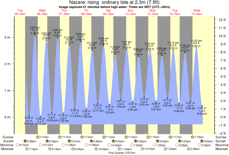 Forecast wind and swell just offshore from Nazare around the time the photo was taken