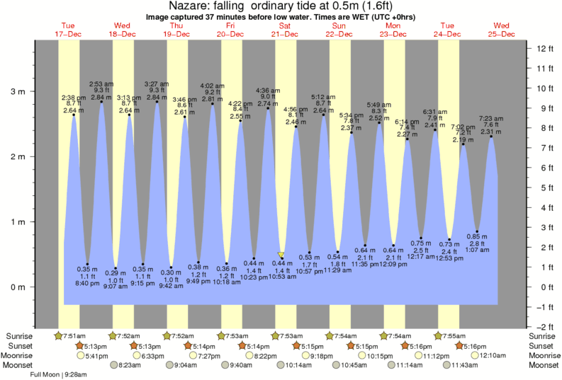Forecast wind and swell just offshore from Nazare around the time the photo was taken