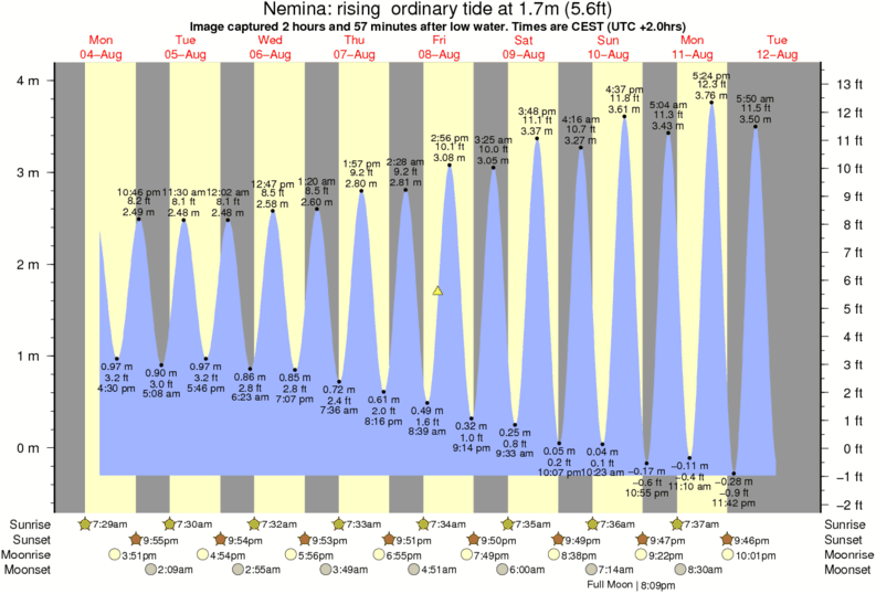 Image captured 2 hours and 57 minutes after low water (rising ordinary tide). Tide height was 1.7m (5.6 ft). Range 4.09m (13.4 ft). Toggle tide graph
