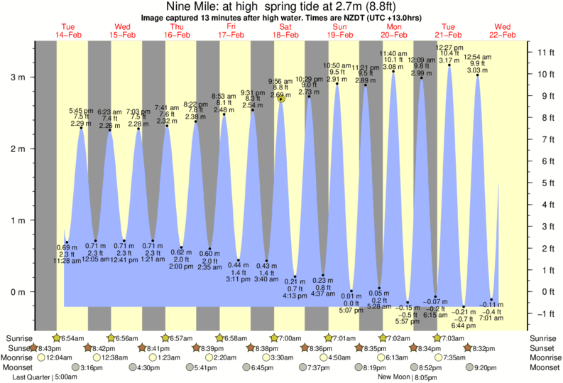 Image captured 13 minutes after high water (at high spring tide). Tide height was 2.7m (8.8 ft). Range 3.38m (11.1 ft). Toggle tide graph