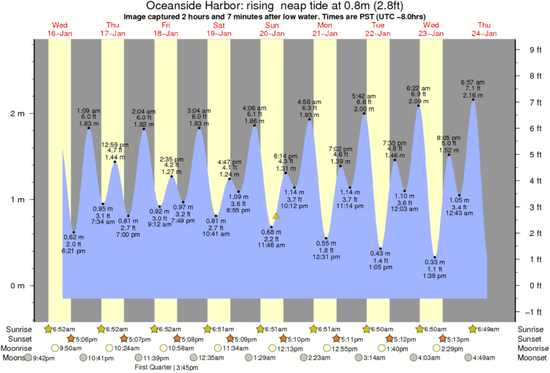 Forecast wind and swell just offshore from Oceanside Harbor around the time the photo was taken