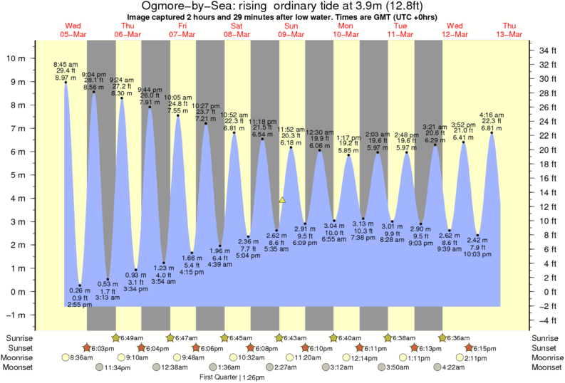 Image captured 2 hours and 29 minutes after low water (rising ordinary tide). Tide height was 3.9m (12.8 ft). Range 10.38m (34.1 ft). Toggle tide graph