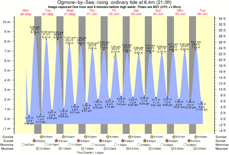 Image captured One hour and 8 minutes before high water (rising ordinary tide). Tide height was 6.4m (21.0 ft). Range 10.11m (33.2 ft). Toggle tide graph