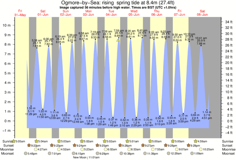 Forecast wind and swell just offshore from Ogmore-by-Sea around the time the photo was taken