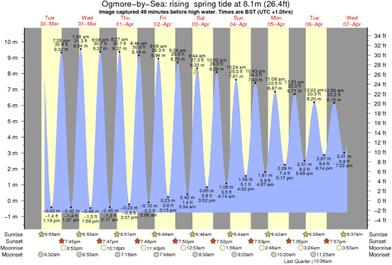 Image captured 49 minutes before high water (rising spring tide). Tide height was 8.1m (26.4 ft). Range 10.56m (34.6 ft). Toggle tide graph