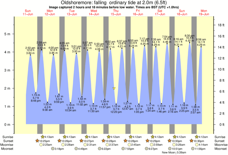 Image captured 2 hours and 18 minutes before low water (falling ordinary tide). Tide height was 2.0m (6.5 ft). Range 5.40m (17.7 ft). Toggle tide graph