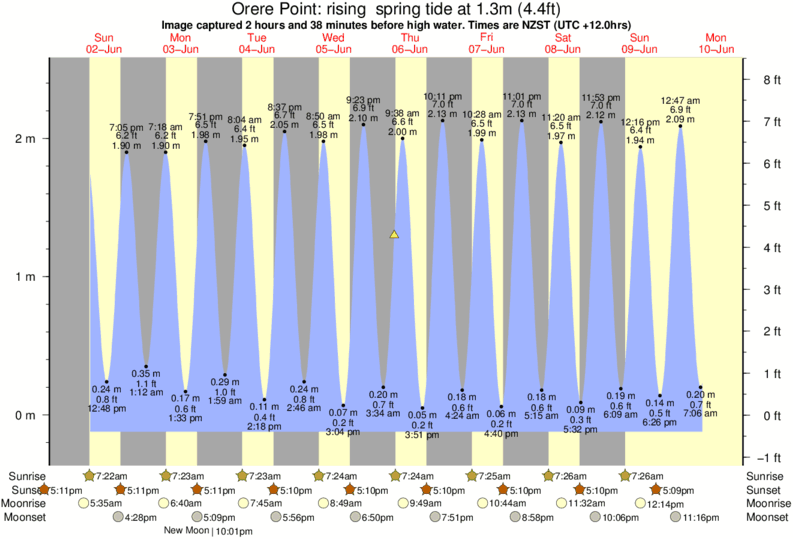 Image captured 2 hours and 38 minutes before high water (rising spring tide). Tide height was 1.3m (4.4 ft). Range 2.46m (8.1 ft). Toggle tide graph