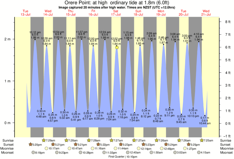 Forecast wind and swell just offshore from Orere Point around the time the photo was taken