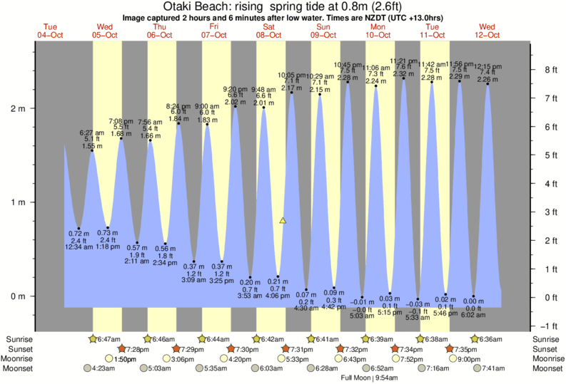 Image captured 2 hours and 6 minutes after low water (rising spring tide). Tide height was 0.8m (2.6 ft). Range 2.58m (8.5 ft). Toggle tide graph