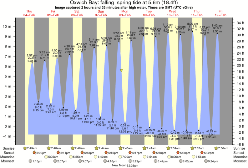 Image captured 2 hours and 33 minutes after high water (falling spring tide). Tide height was 5.6m (18.4 ft). Range 10.63m (34.9 ft). Toggle tide graph