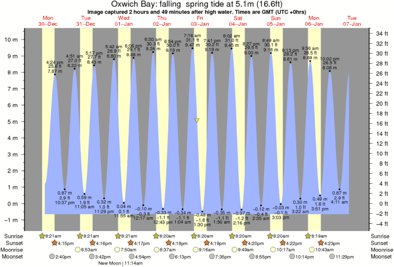 Image captured 2 hours and 49 minutes after high water (falling spring tide). Tide height was 5.1m (16.6 ft). Range 10.31m (33.8 ft). Toggle tide graph
