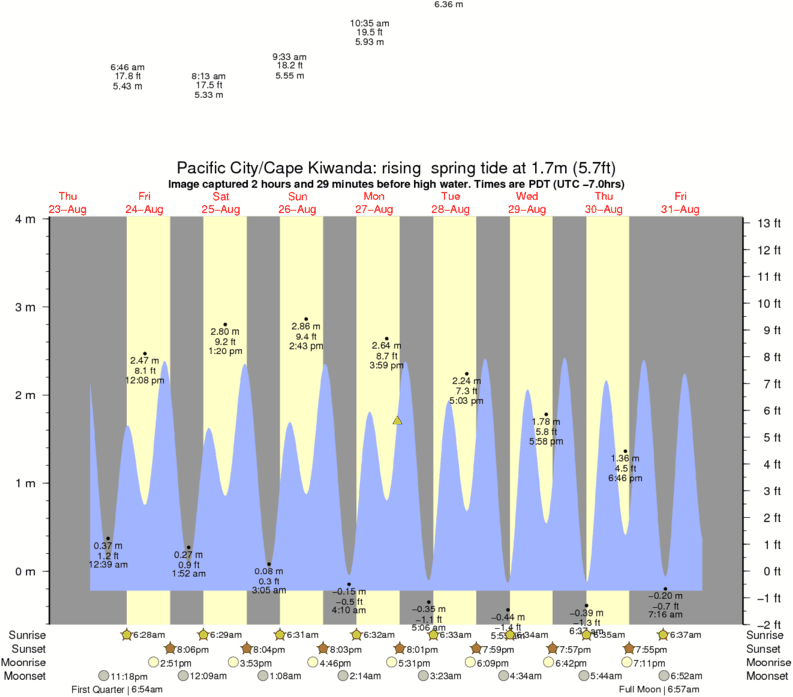 Image captured 2 hours and 29 minutes before high water (rising spring tide). Tide height was 1.7m (5.7 ft). Range 3.86m (12.7 ft). Toggle tide graph