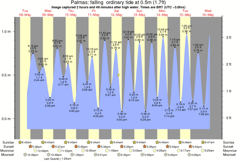 Image captured 2 hours and 49 minutes after high water (falling ordinary tide). Tide height was 0.5m (1.7 ft). Range 1.17m (3.8 ft). Toggle tide graph