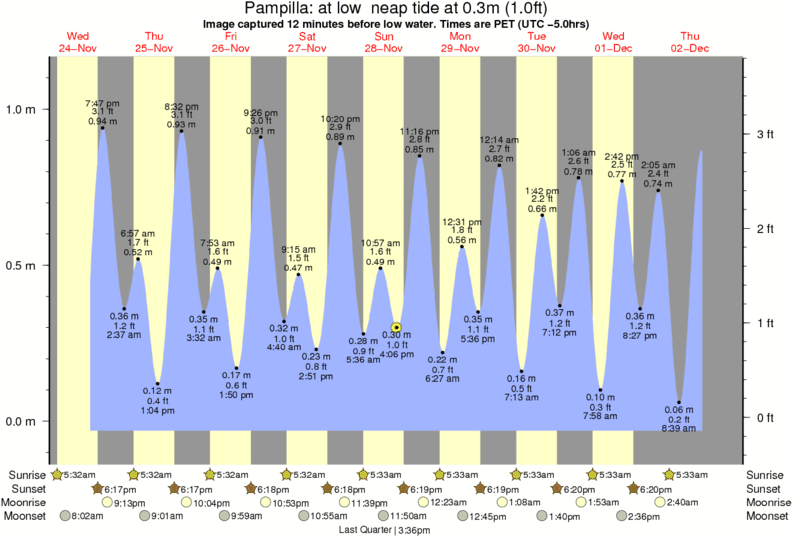 Image captured 12 minutes before low water (at low neap tide). Tide height was 0.3m (1.0 ft). Range 1.09m (3.6 ft). Toggle tide graph