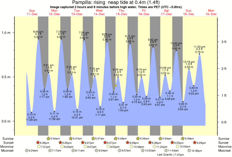 Image captured 2 hours and 9 minutes before high water (rising neap tide). Tide height was 0.4m (1.4 ft). Range 1.12m (3.7 ft). Toggle tide graph