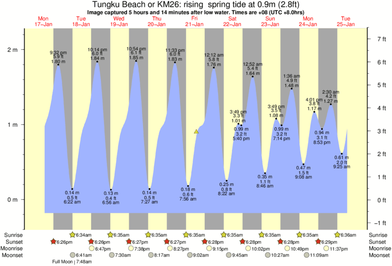 Forecast wind and swell just offshore from Tungku Beach or KM26 around the time the photo was taken