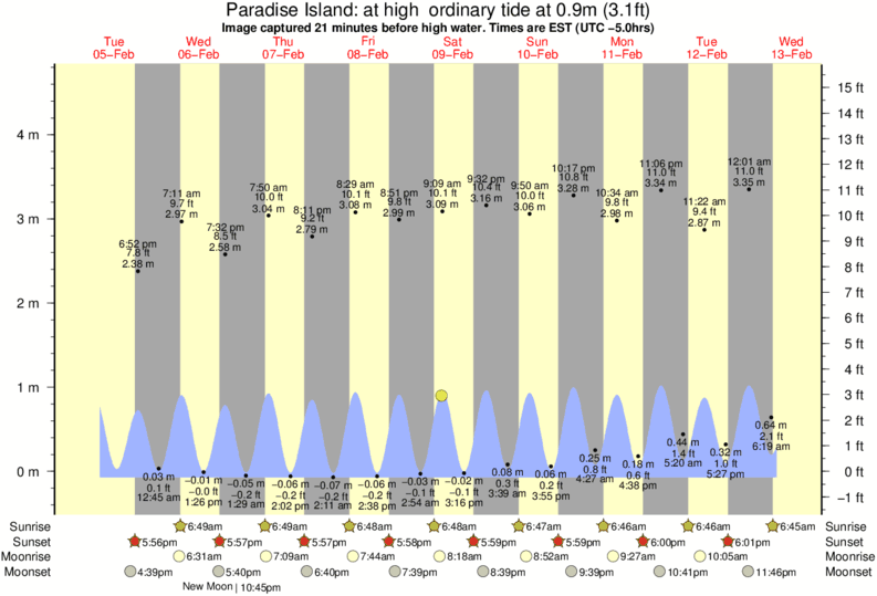 Forecast wind and swell just offshore from Paradise Island around the time the photo was taken