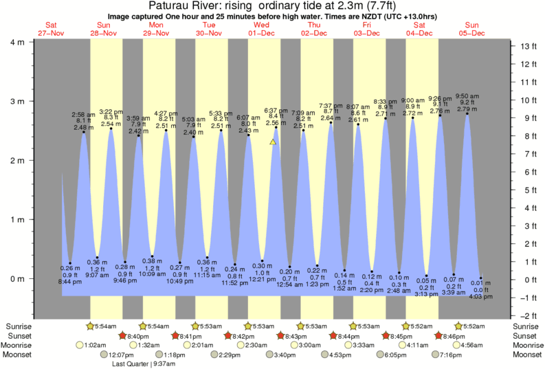 Forecast wind and swell just offshore from Paturau River around the time the photo was taken