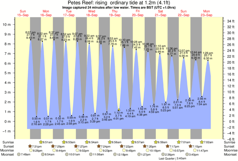 Image captured 24 minutes after low water (rising ordinary tide). Tide height was 1.2m (4.1 ft). Range 10.49m (34.4 ft). Toggle tide graph