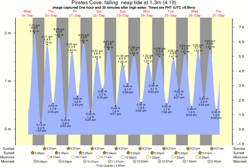 Image captured One hour and 35 minutes after high water (falling neap tide). Tide height was 1.3m (4.1 ft). Range 2.22m (7.3 ft). Toggle tide graph