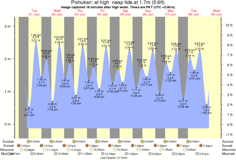 Image captured 18 minutes after high water (at high neap tide). Tide height was 1.7m (5.6 ft). Range 3.11m (10.2 ft). Toggle tide graph