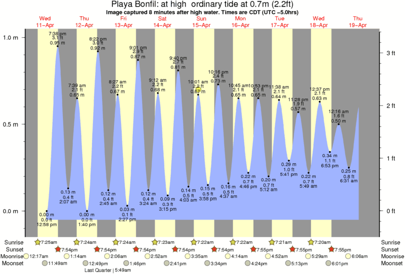 Forecast wind and swell just offshore from Playa Bonfil around the time the photo was taken