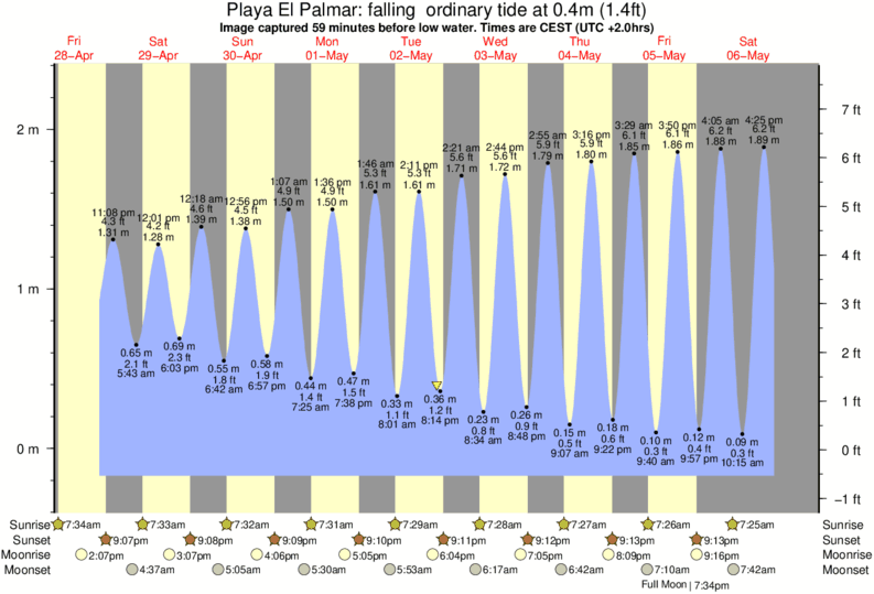 Forecast wind and swell just offshore from Playa El Palmar around the time the photo was taken