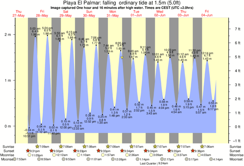 Forecast wind and swell just offshore from Playa El Palmar around the time the photo was taken