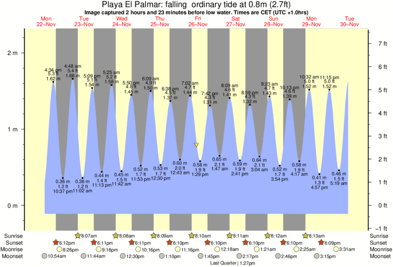Forecast wind and swell just offshore from Playa El Palmar around the time the photo was taken