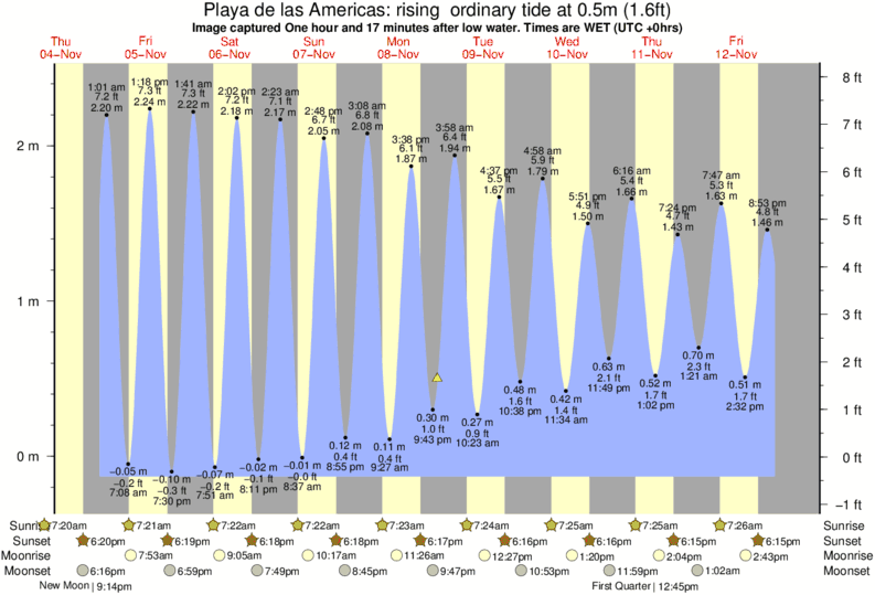 Forecast wind and swell just offshore from Playa de las Americas around the time the photo was taken