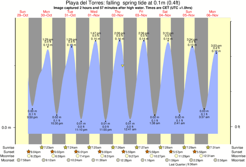 Image captured 2 hours and 57 minutes after high water (falling spring tide). Tide height was 0.1m (0.4 ft). Range 0.17m (0.6 ft). Toggle tide graph