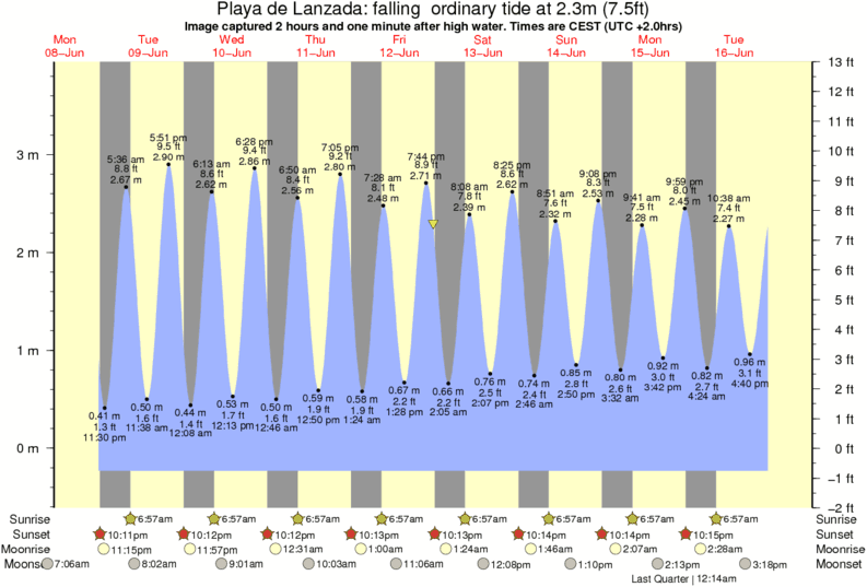 Image captured 2 hours and one minute after high water (falling ordinary tide). Tide height was 2.3m (7.5 ft). Range 3.80m (12.5 ft). Toggle tide graph