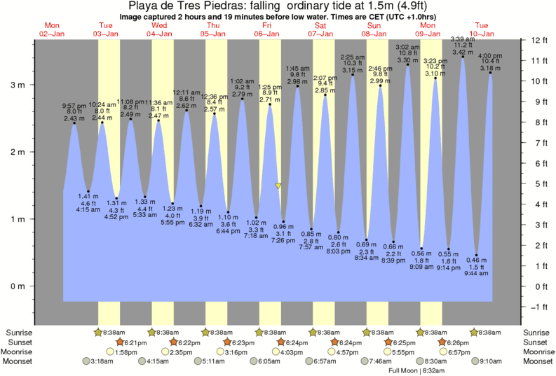 Image captured 2 hours and 19 minutes before low water (falling ordinary tide). Tide height was 1.5m (4.9 ft). Range 3.55m (11.6 ft). Toggle tide graph