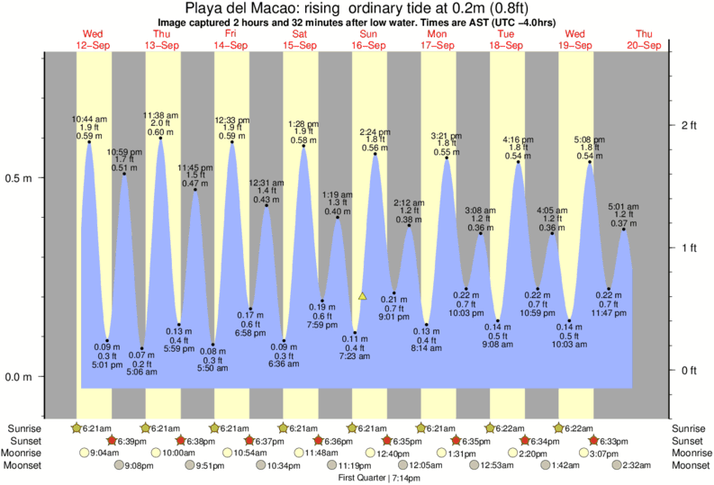 Forecast wind and swell just offshore from Playa del Macao around the time the photo was taken